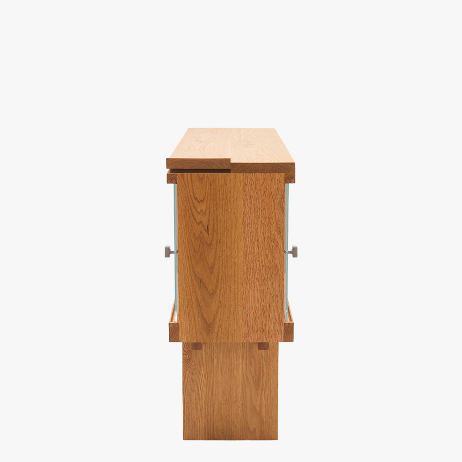 Material : Natural Oil Finished Red Oak, Satin Glass, Aluminium Handle
